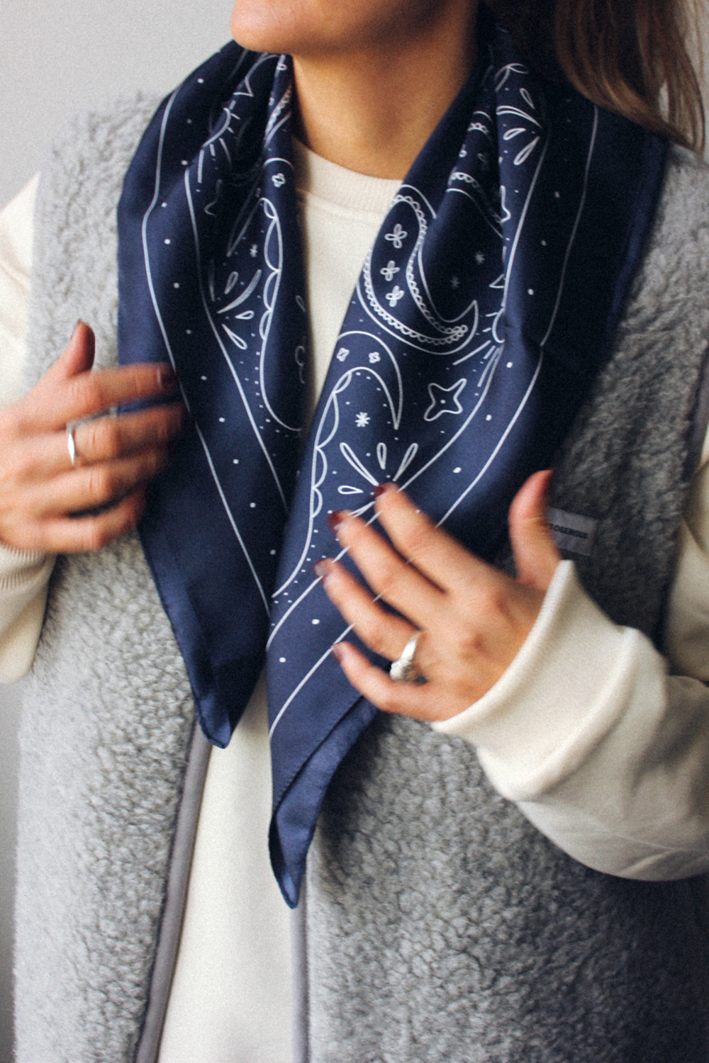 Stawiamy na jakość i styl, a Apaszka Tiger Blue to dowód na to, że można połączyć obie te cechy w jednym produkcie. Apaszkę można stylizować na wiele sposobów – luźno leżącą na ramionach, przewiązaną na szyi oraz jako dodatek do torebki. Detale printu podkreślają charakter WHYSOSERIOUS i niezobowiązujący styl apaszki, co sprawia, że pasuje ona do każdej stylizacji.