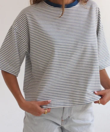 Boxy Brązowy T-shirt W Paski Premium