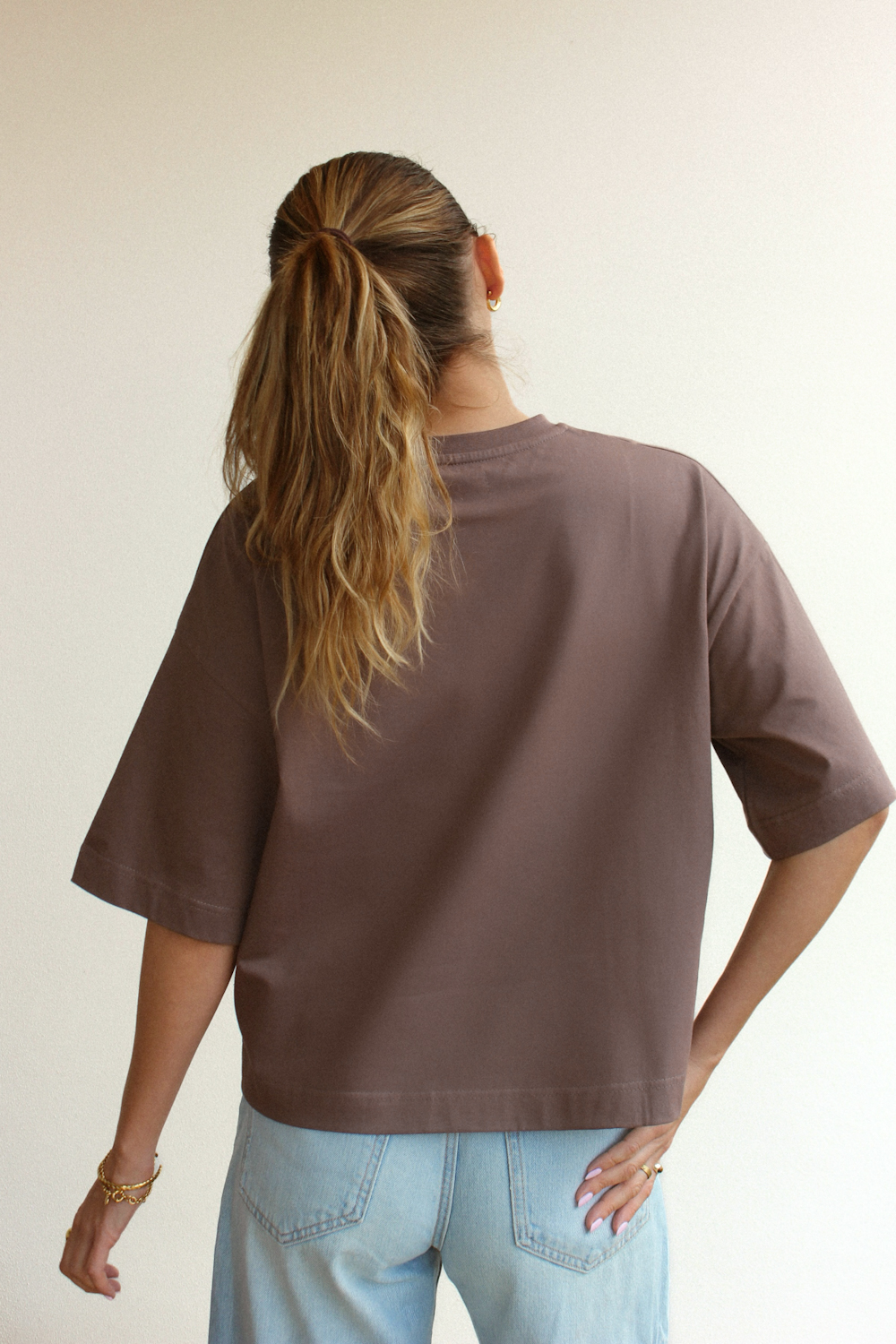 Brązowy t-shirt boxy z bawełny to kolejna odsłona naszego bestsellerowego t-shirtu o kroju boxy. Zaprojektowany dla tych, którzy cenią sobie jakość, ale też wyjątkowy styl. Pracowaliśmy nad nim ponad rok, tak aby ten t-shirt boxy był tym, czego poszukujesz: wygodny, lekki oversize, stworzony z miękkiego materiału i pasujący do każdej stylizacji. Krój tego t-shirtu pozwoli Ci poczuć się swobodnie i komfortowo, niezależnie od tego, czy planujesz weekendowy wyjazd, czy potrzebujesz porządnego t-shirtu basic do pracy.
