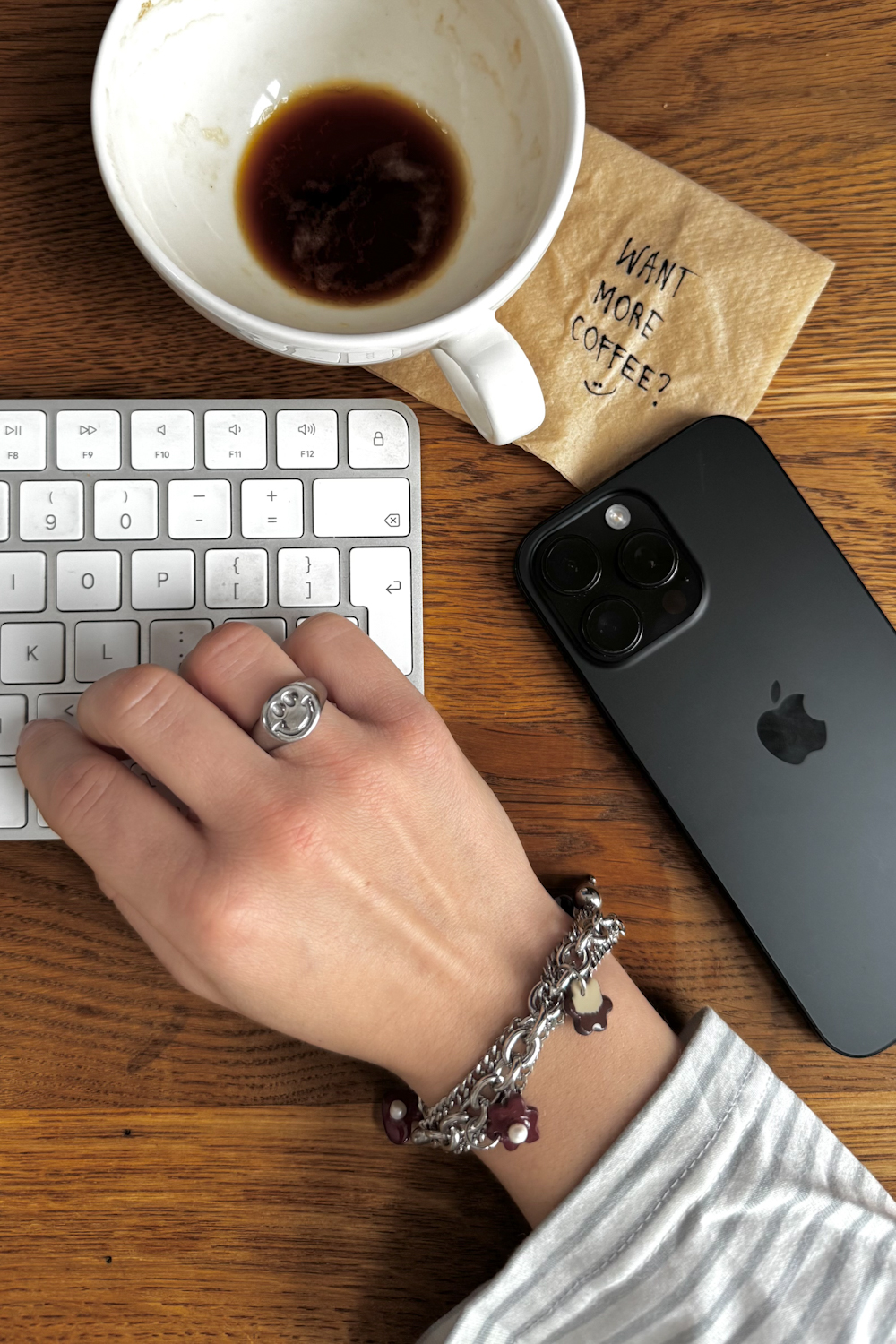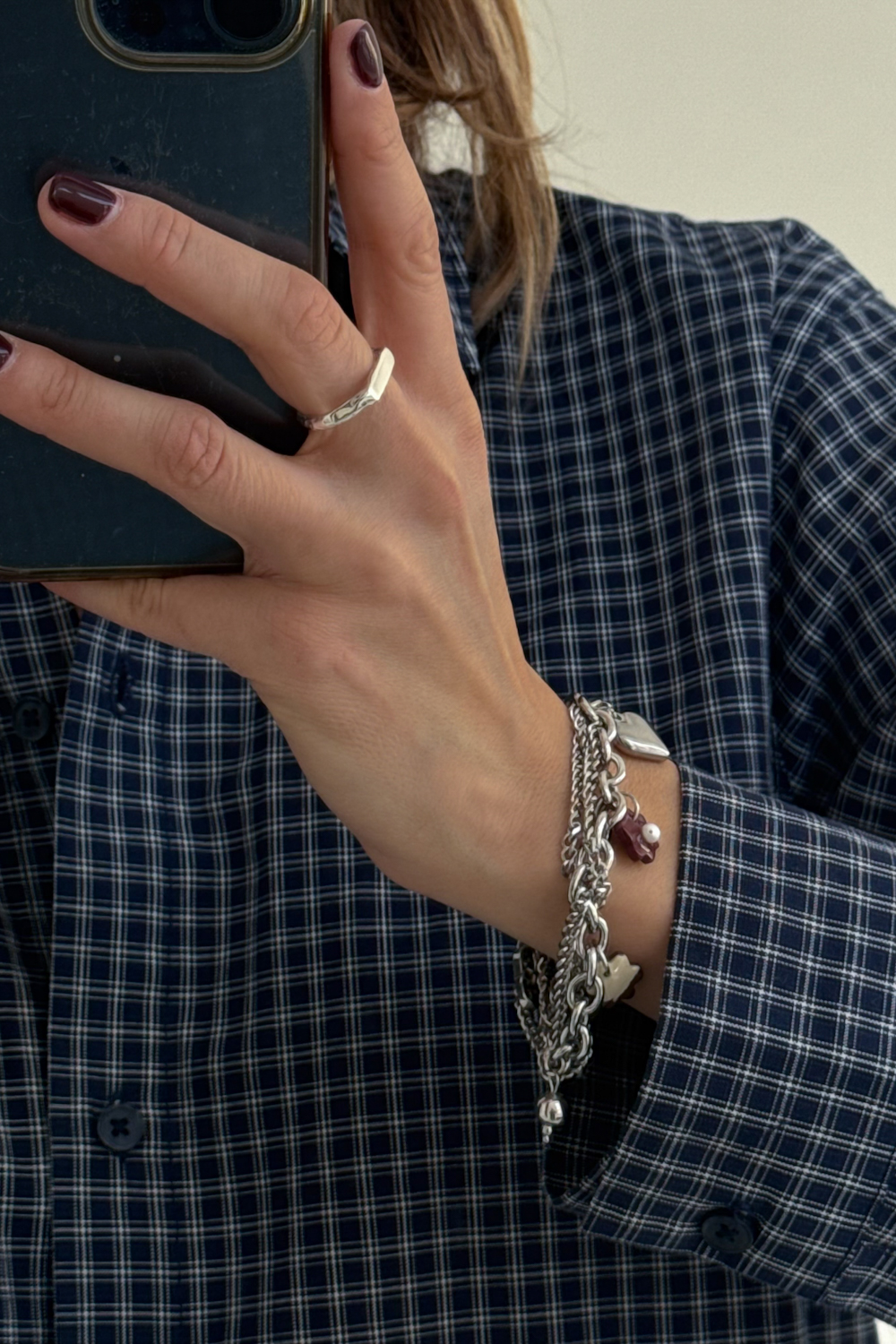 Ręcznie robione zawieszki w kolorze bordo i łaciatym idealnie dopełniają bransoletkę, nadając jej lekko romantycznego vibe’u. Ta bransoletka pasuje do wszystkiego: miejskich looków, wakacyjnych outfitów czy romantycznego zestawu na randkę.