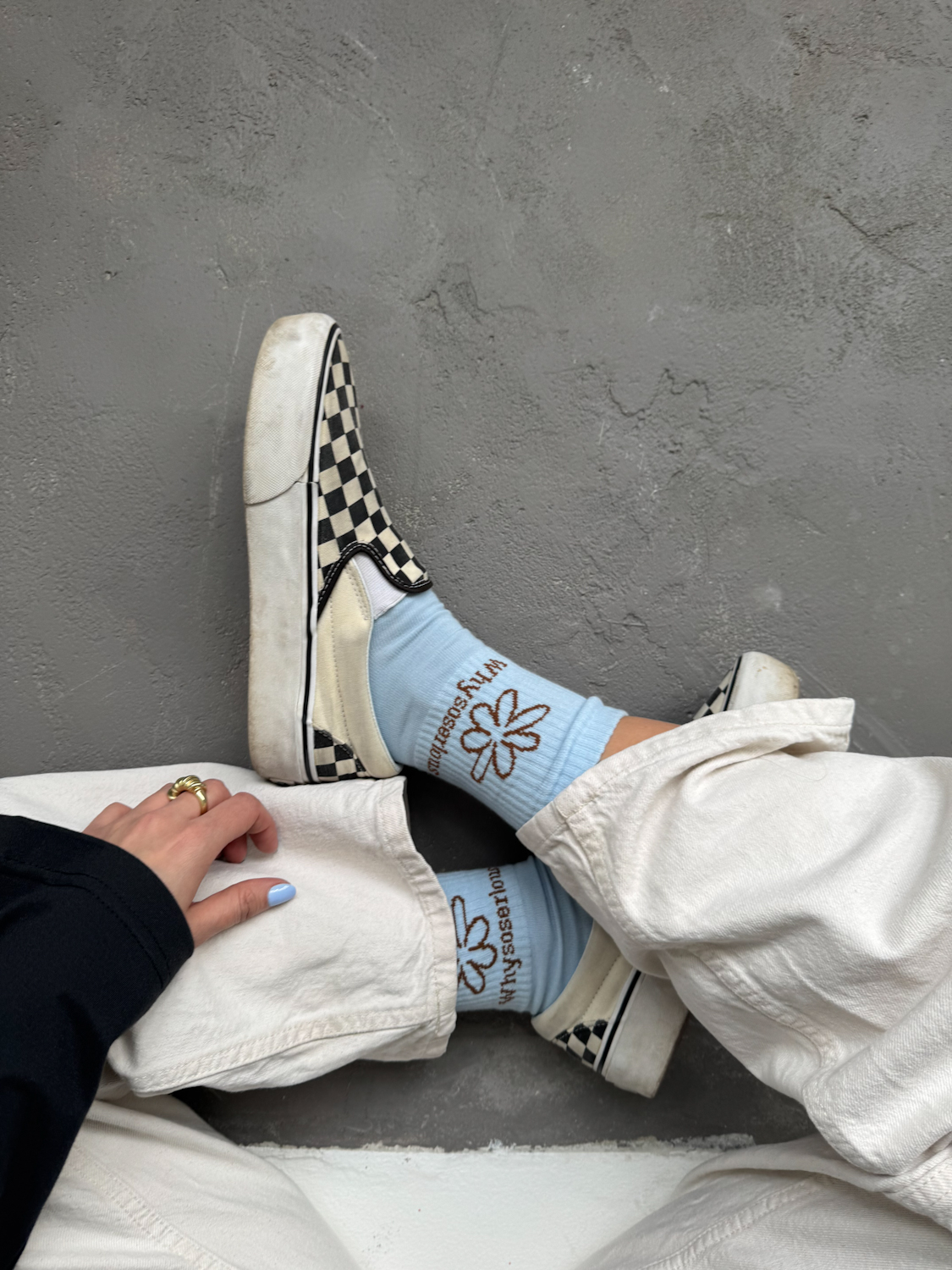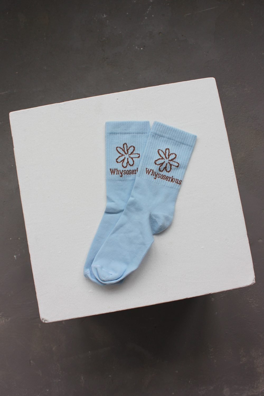 The light blue shade of the socks contrasts with the brown of the Whysoserious flower. Perfect for summer days, but also great with urban styling. These are socks that add character to any look - from classic jeans to your favourite tracksuit bottoms.