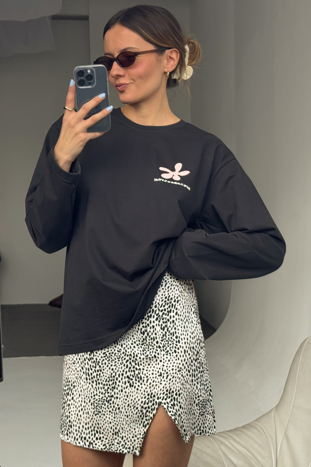 Colour - A classic white with an animal print that gives you complete styling freedom - pair it with a T-shirt, top, oversize sweatshirt or fitted longsleeve and it always looks good.