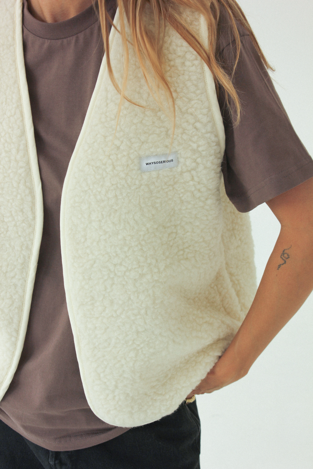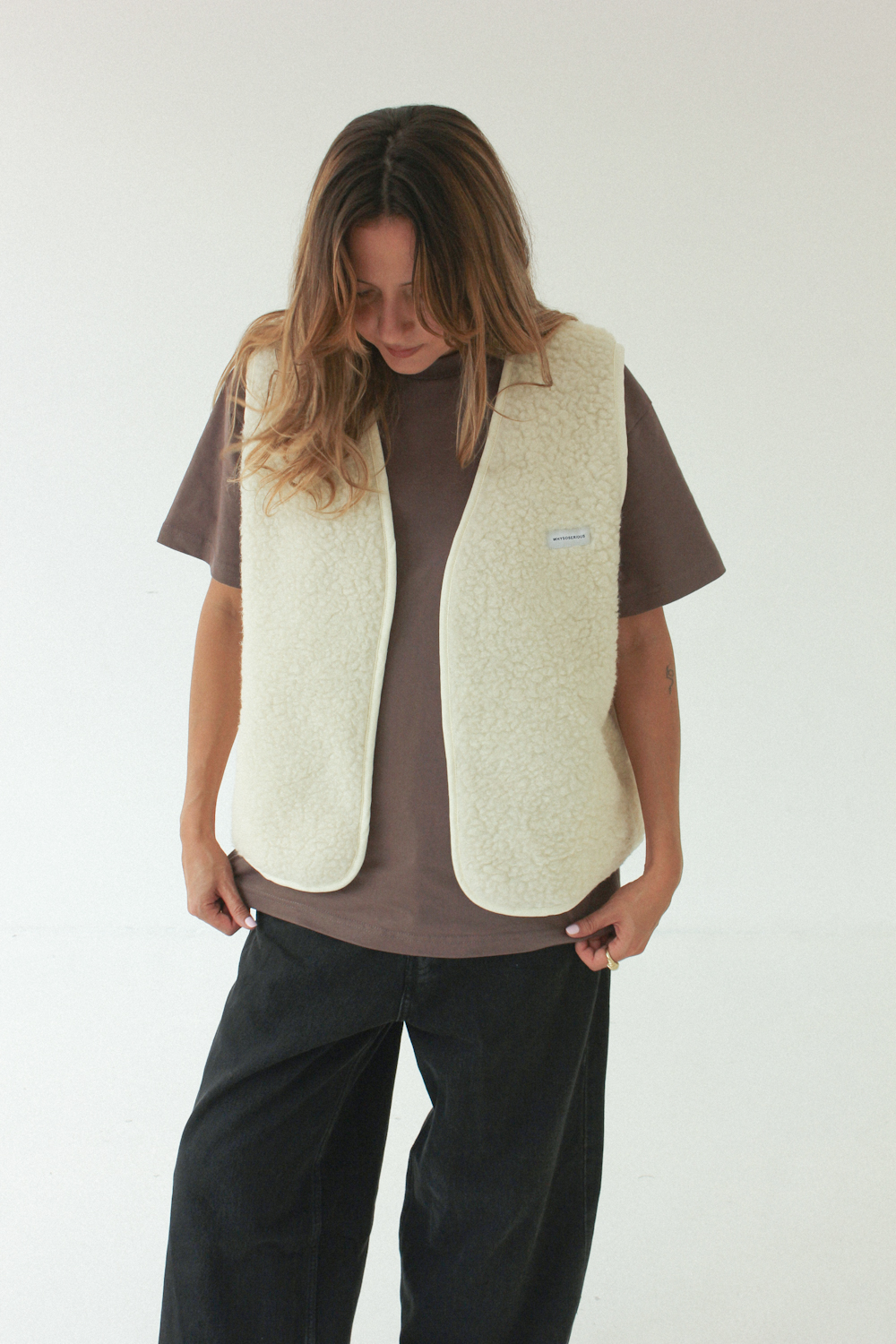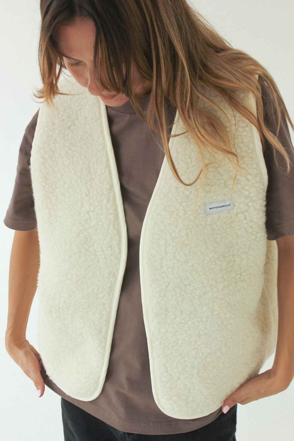 Jasna kamizelka z wełny merino w kolorze Ecru to ukłon w stronę miejskiego stylu z twistem natury. Idealna dla tych, którzy lubią warstwowe stylizacje, cenią sobie jakość premium i basic kolory w szafie! Kolor ecru dodaje charakteru i będzie pasował nam do każdej stylizacji. Kamizelka wyróżnia się także na tle klasycznych fasonów. Zakładasz ją na bluzę, sweter, longsleeve albo bezpośrednio na T-shirt – i jesteś gotowy_a na spacer, kawę z przyjaciółką albo spontaniczny wypad za miasto.