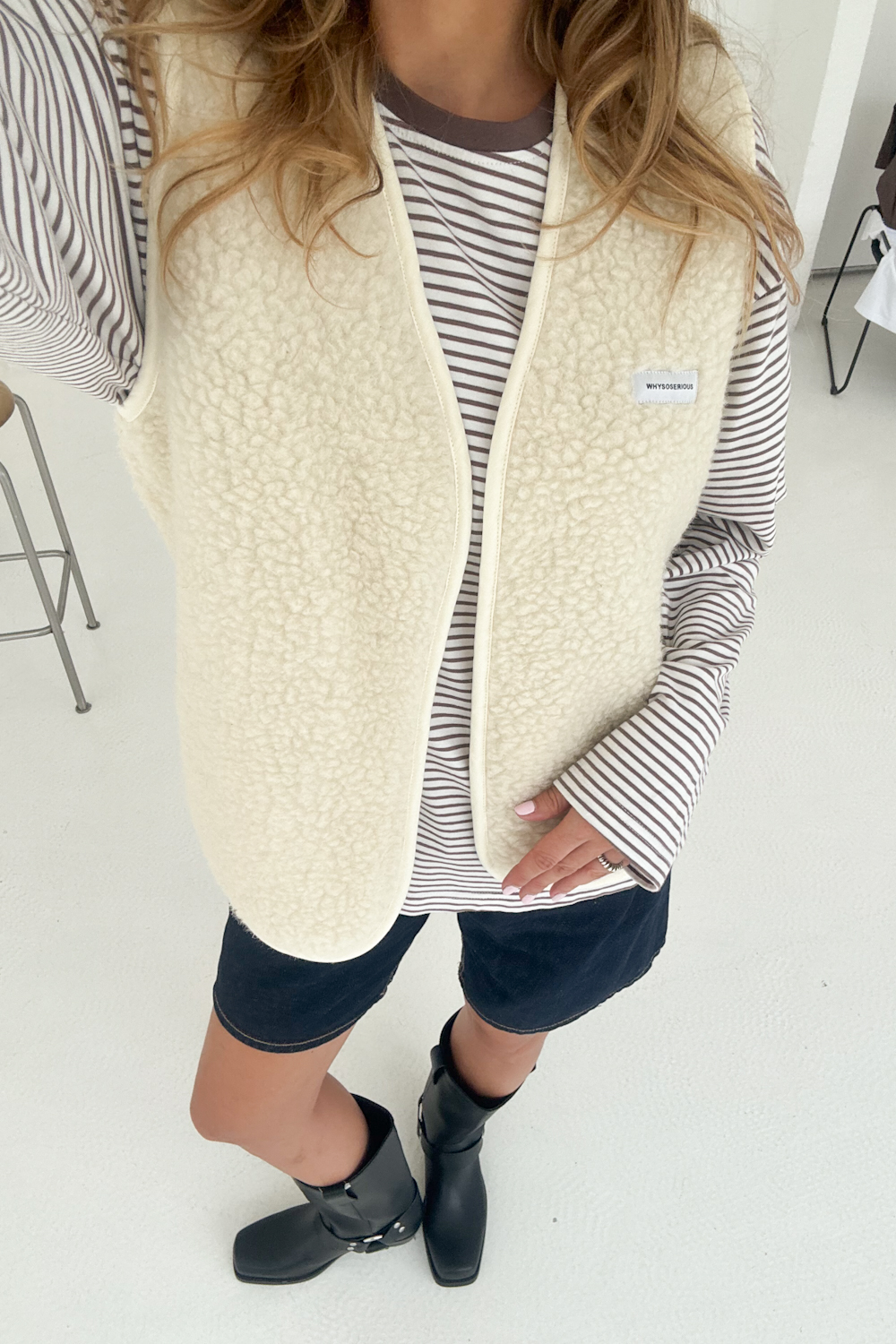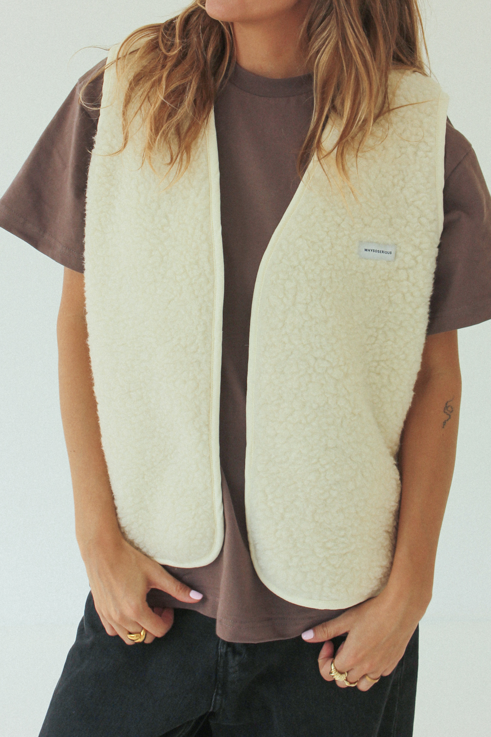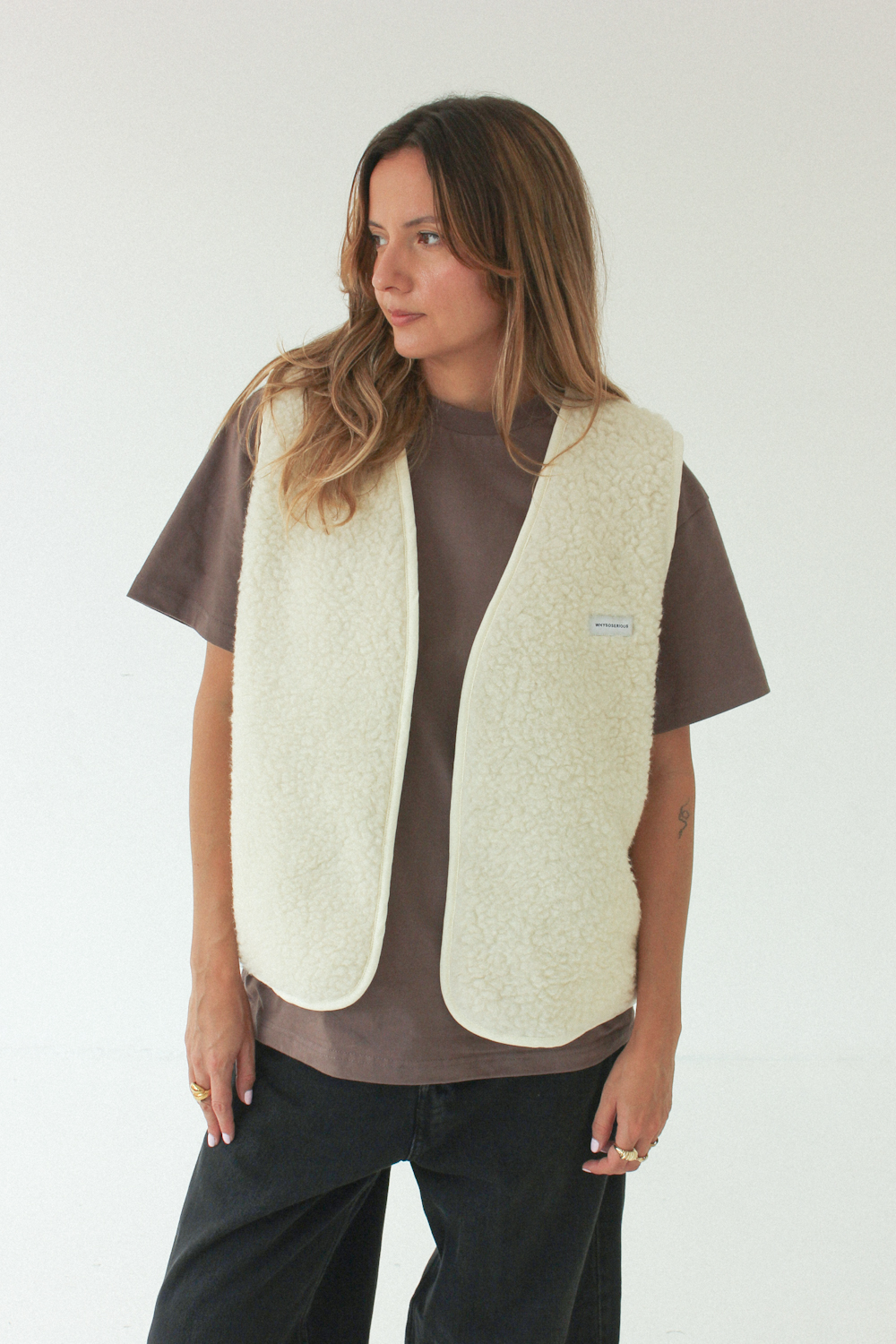 Jasna kamizelka z wełny merino w kolorze Ecru to ukłon w stronę miejskiego stylu z twistem natury. Idealna dla tych, którzy lubią warstwowe stylizacje, cenią sobie jakość premium i basic kolory w szafie! Kolor ecru dodaje charakteru i będzie pasował nam do każdej stylizacji. Kamizelka wyróżnia się także na tle klasycznych fasonów. Zakładasz ją na bluzę, sweter, longsleeve albo bezpośrednio na T-shirt – i jesteś gotowy_a na spacer, kawę z przyjaciółką albo spontaniczny wypad za miasto.
