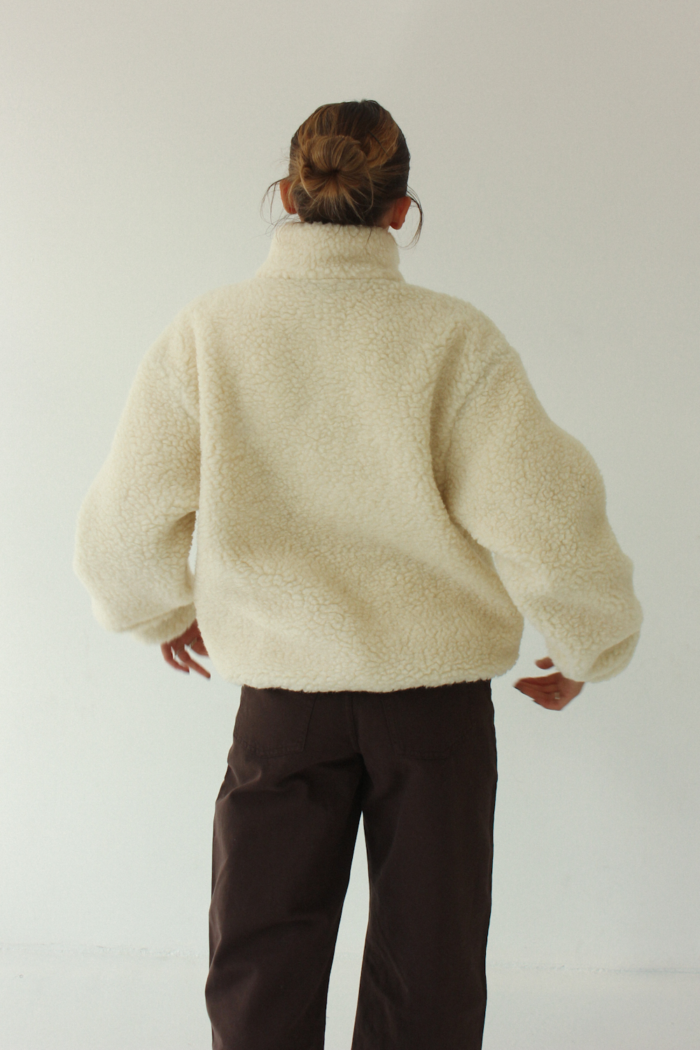 Ściągacz na dole i w rękawach podkreśla sylwetkę i nadaje bluzie oversize’owego, puszystego kształtu.