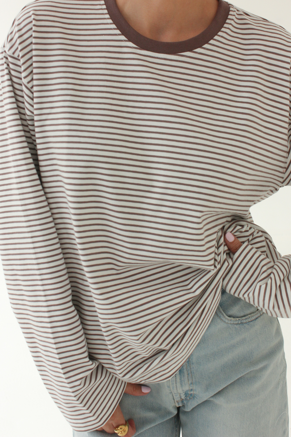 Longsleeve w paski to nasz bestseller, który wnosi luz, styl i jakość do każdej stylizacji. Teraz w matchującym zestawie ze spodniami typu Wide Leg.