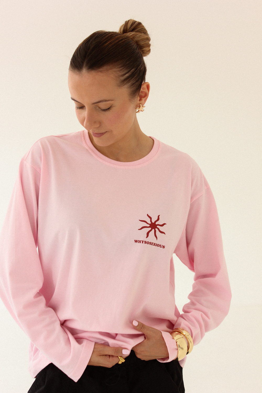 Kolor – różowy, który pasuje do wszystkiego i sprawia, że ten longsleeve wpasuje się w każdą stylizację — od miejskich looków, po outfity na każdy wyjazd.