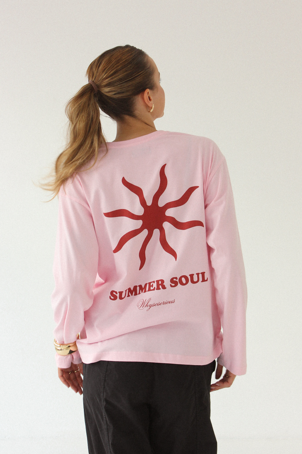Różowy longsleeve z czerwonym nadrukiem Summer Soul to tęsknota za oceanem, słońcem i plażą. To ta rzecz w Twojej szafie, która mówi LATO i nadaje każdej stylizacji luźnego, surferskiego klimatu.