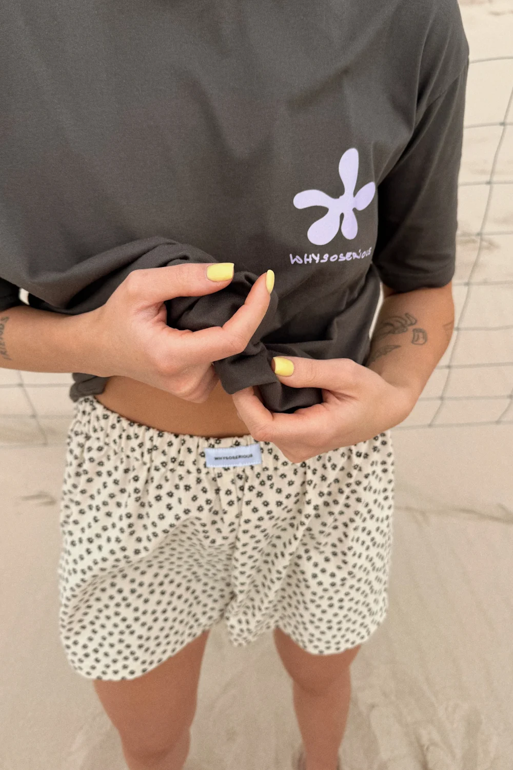 Szorty Deià Cotton Flowers to propozycja dla tych, którzy lubią łączyć wygodę i lekki vibe w codziennym looku. Powstały z myślą o tych chwilach, kiedy masz ochotę zwolnić tempo – czy to podczas letniego spaceru po mieście, leniwego popołudnia na tarasie, czy spontanicznego weekendu za miastem nad jeziorem. Ten model to esencja luzu, swobody i dobrego designu.
